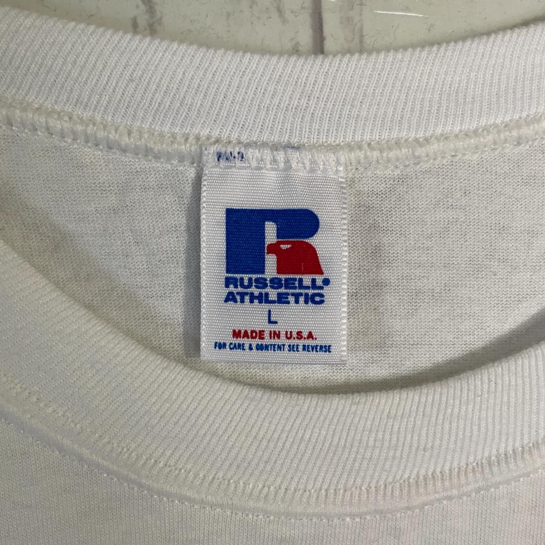 アメリカ製RUSSEL ATHLETICの90年代のカレッジプリントTシャツ。