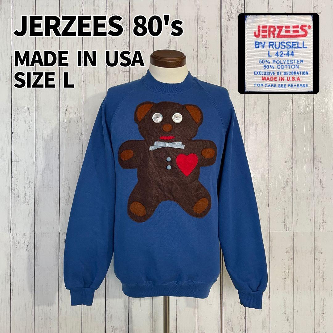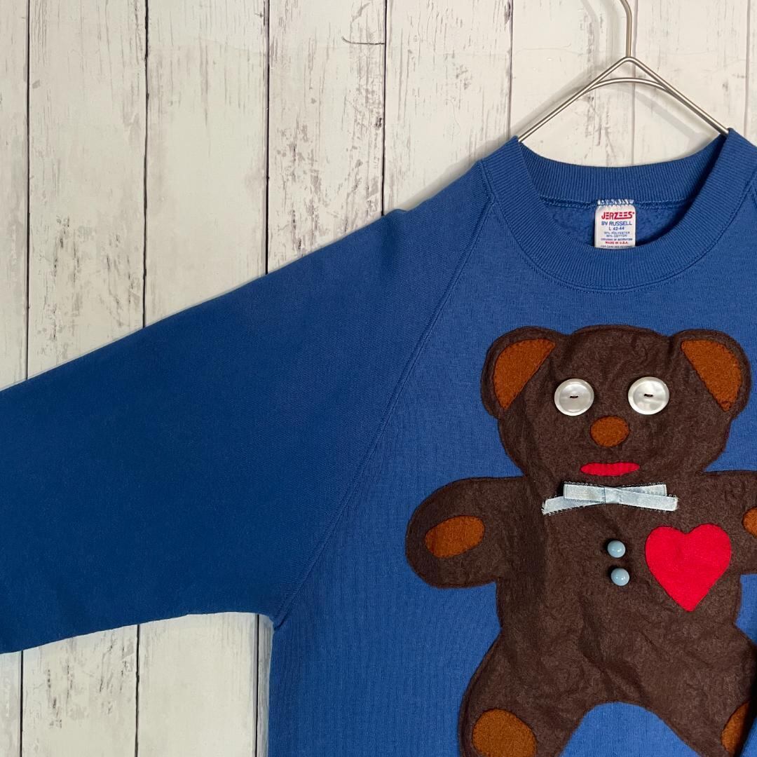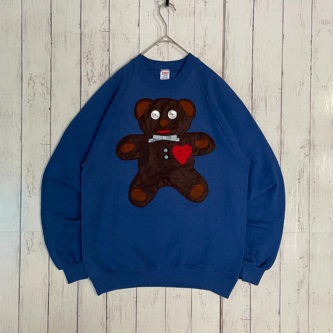 【一点物】80年代 アメリカ製 JERZEES ジャージーズ スウェット ラグランスリーブ アップリケ くまさん Lサイズ[SJ0040]