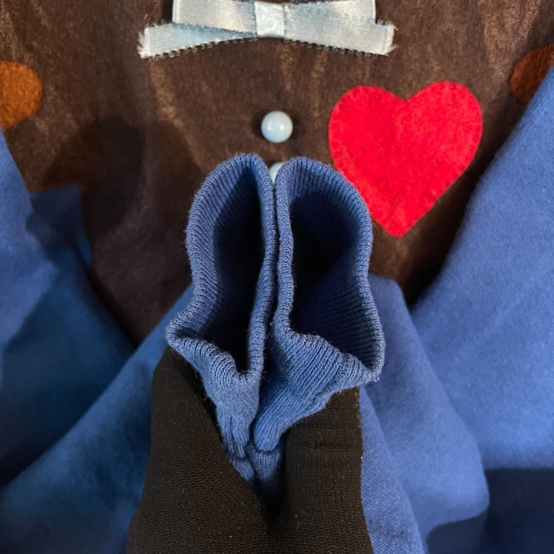 アップリケのかわいいくまさんは、リボンやボタンなどの意匠も非常に凝っています。