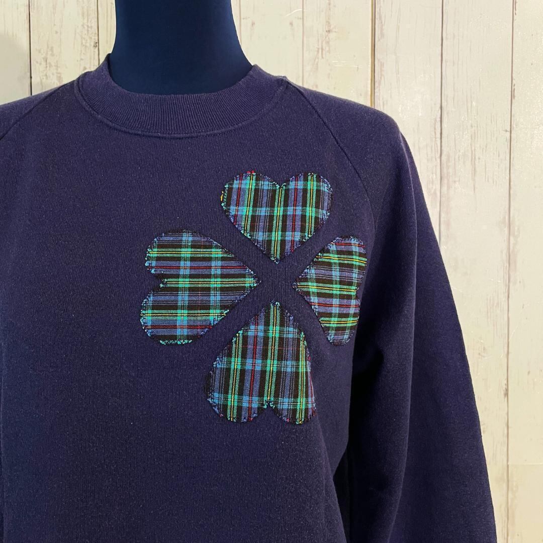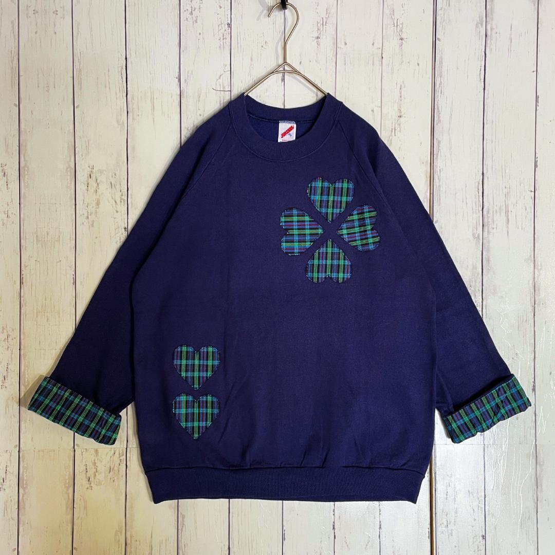 CLOVER HEART チェック柄 MADE IN USA vintage スウェットシャツ オーバーサイズ ゆるだぼ デカロゴ 大きいサイズ アメリカ輸入 US古着 ヴィンテージ古着 古着屋巡り 古着ファッション 古着コーデ 古着屋好き 古着男子 古着女子 などがお好きな方に。
