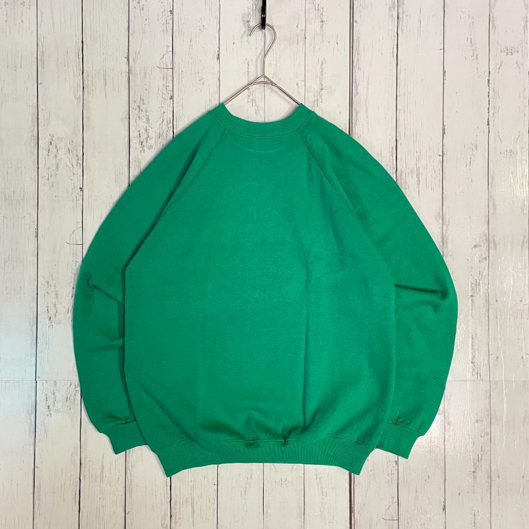 【一点物】Hanes ヘインズ 80年代 ヴィンテージ スウェットシャツ アメリカ製 ラグランスリーブ ロゴ エメラルドグリーン Lサイズ[SJ0015]