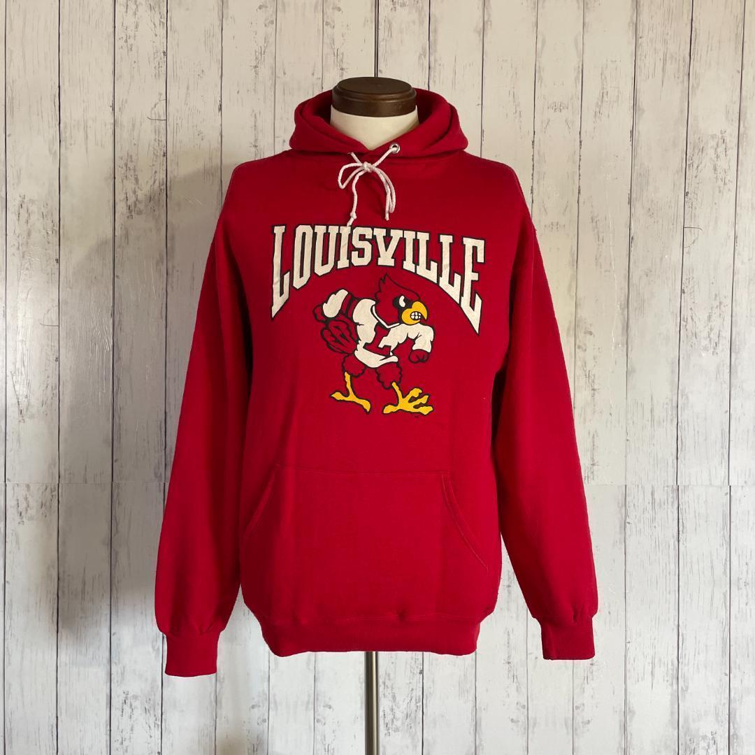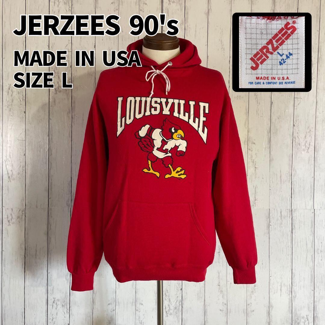 【一点物】JERZEES ジャージーズ 90年代 アメリカ製 スウェットパーカ LOUISVILLE 赤 Lサイズ[ST0014]