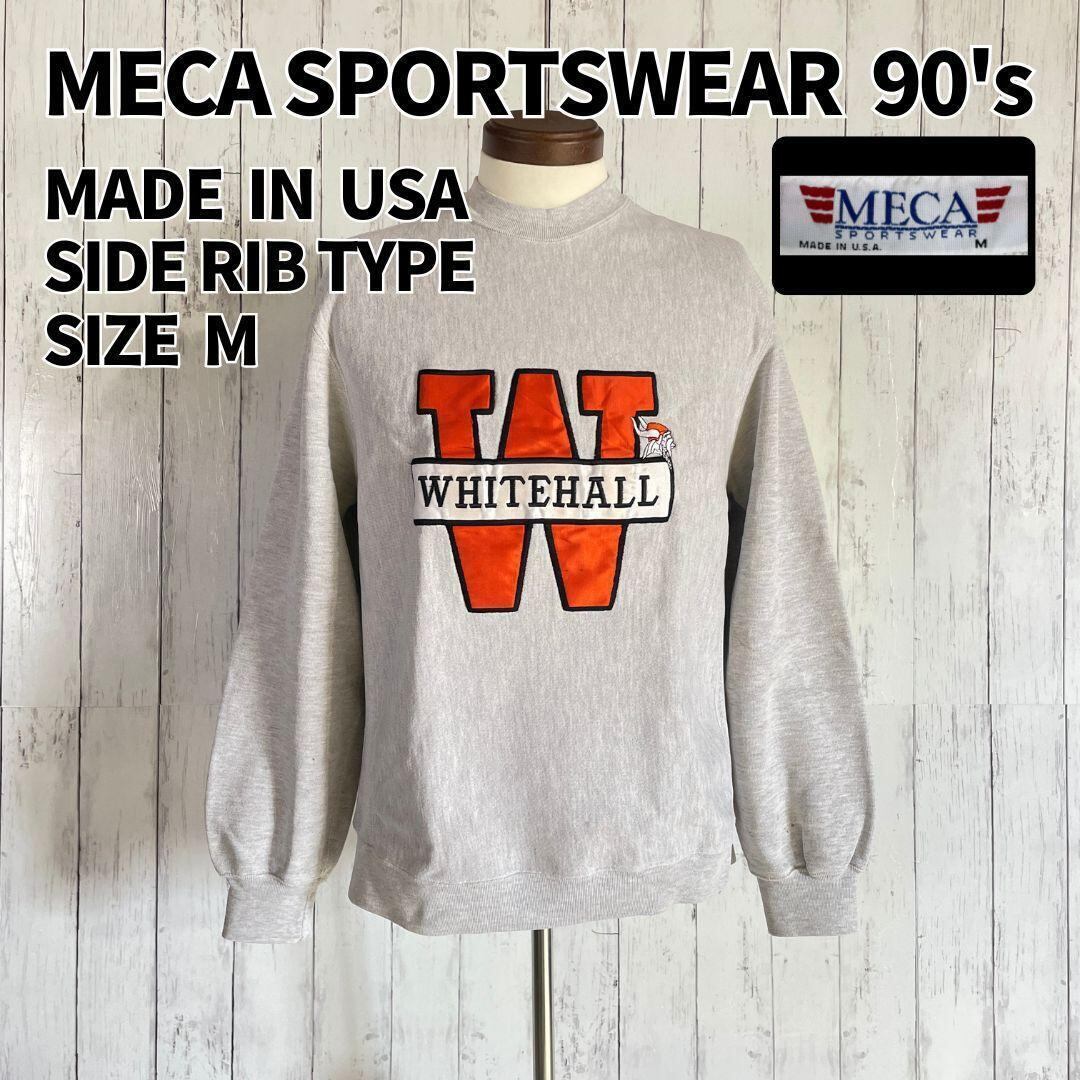 【一点物】MECA SPORTSWEAR 90年代 アメリカ製 MADE IN USA スウェットシャツ WHITEHALL カレッジプリント グレー Mサイズ[ST0019]