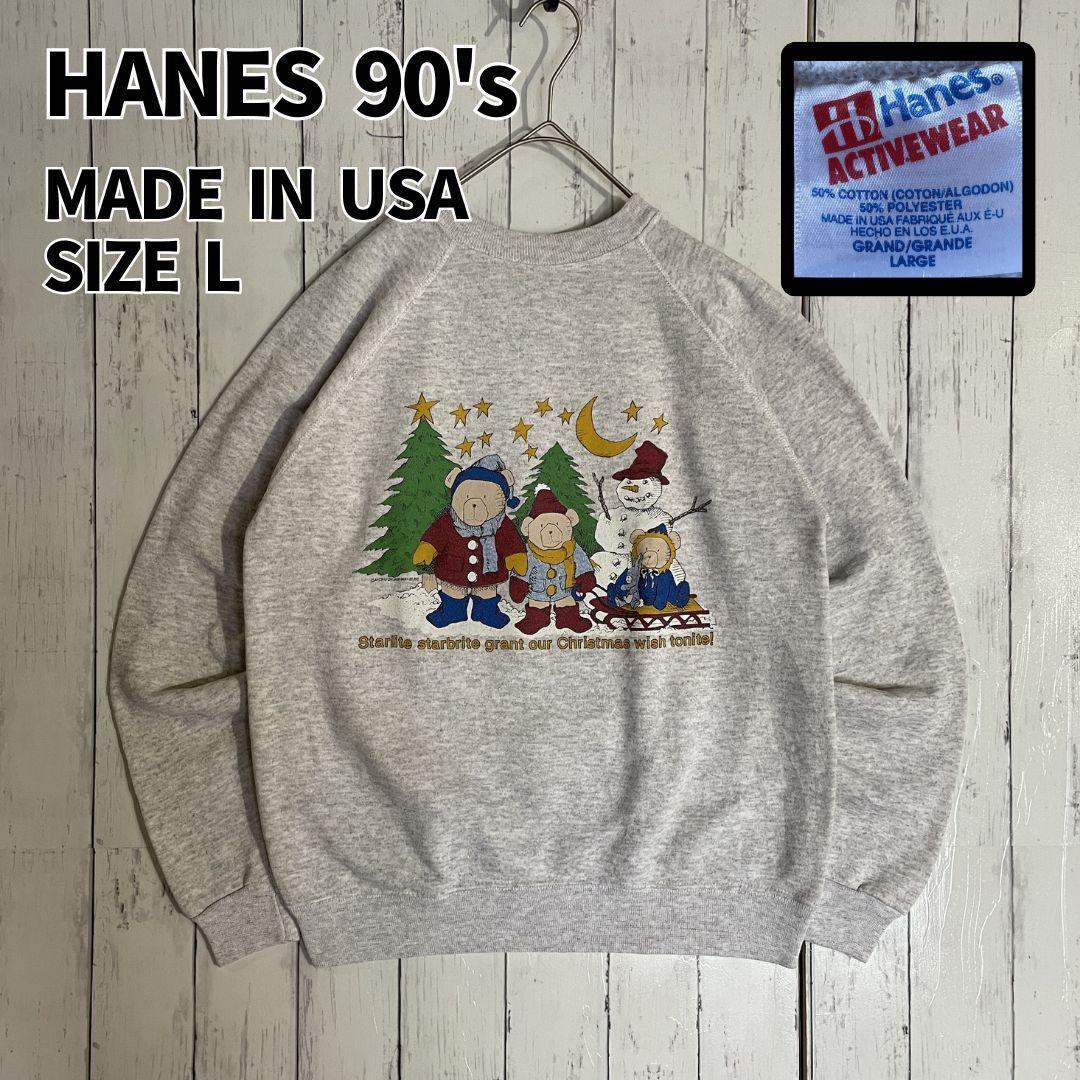 HANES ヘインズ クリスマス アメリカ製スウェット Lサイズ[ST0008]