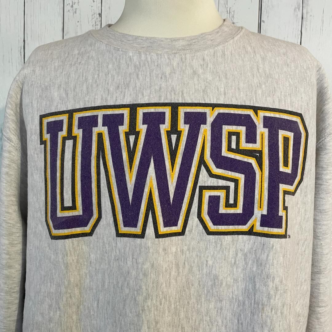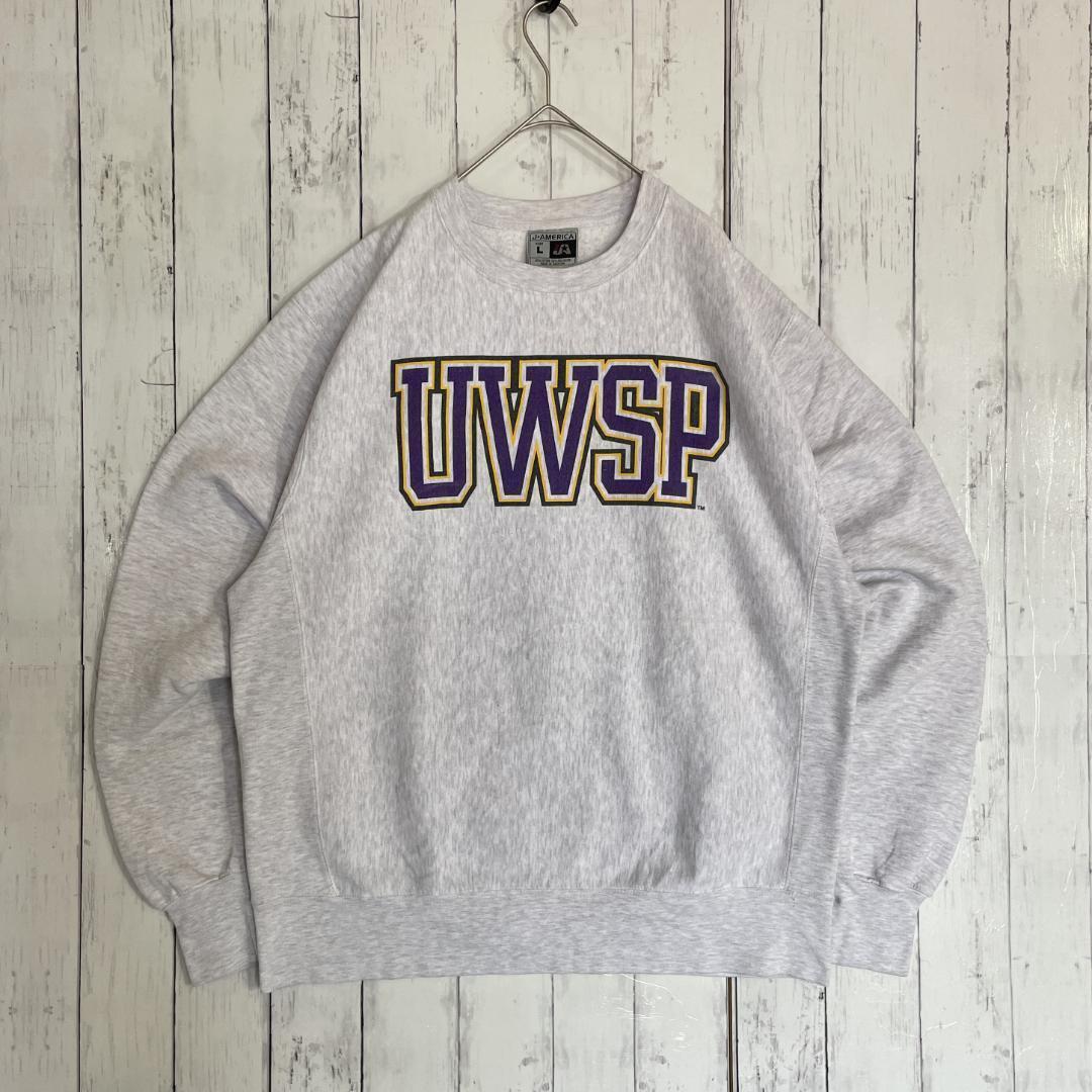 【一点物】J AMERICA 90年代 スウェットシャツ UWSP カレッジプリント グレー Lサイズ[ST0018]