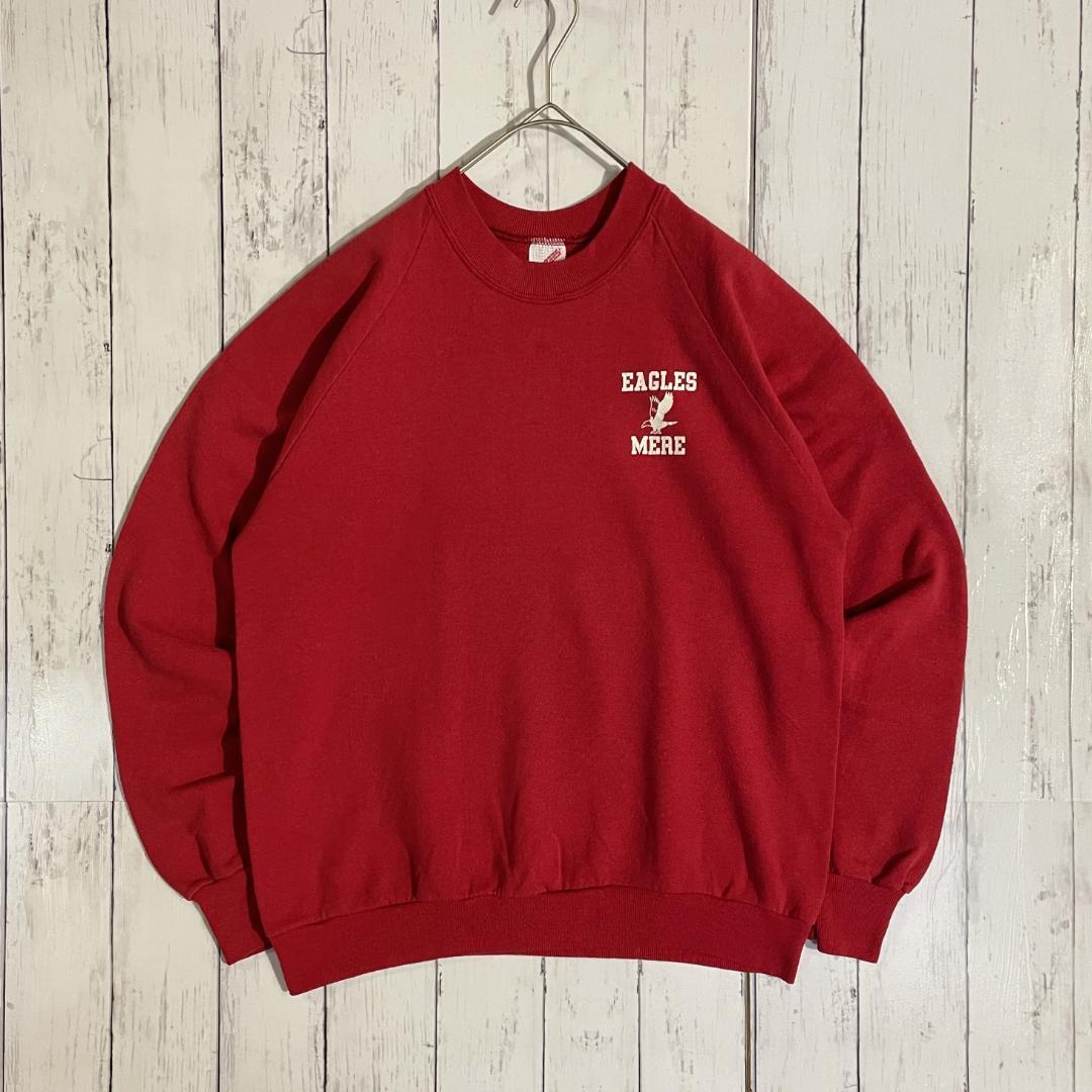 【一点物】JERZEES ジャージーズ 90年代 スウェットシャツ アメリカ製 ラグランスリーブ ロゴ レッド Lサイズ[SJ0017]
