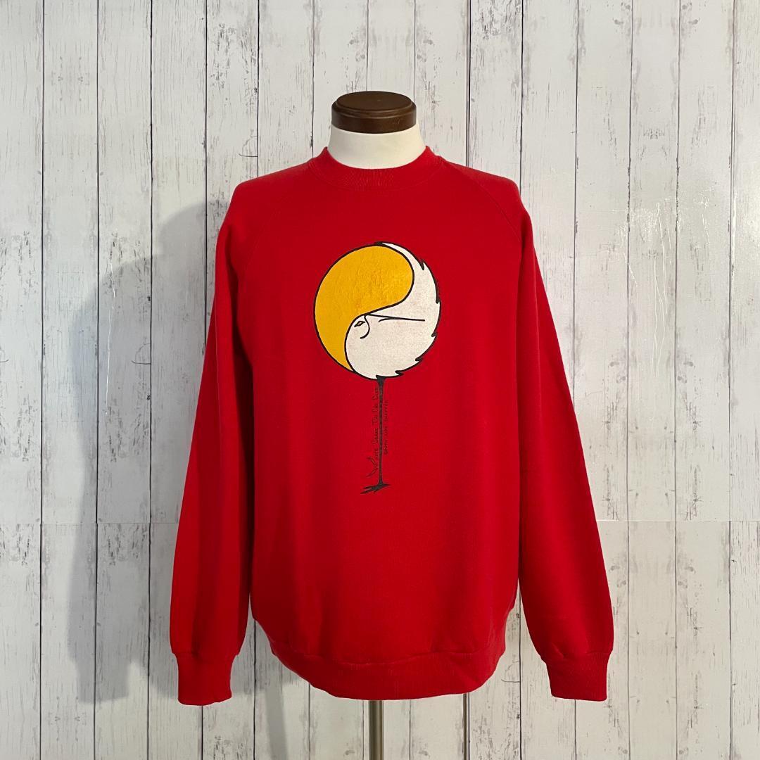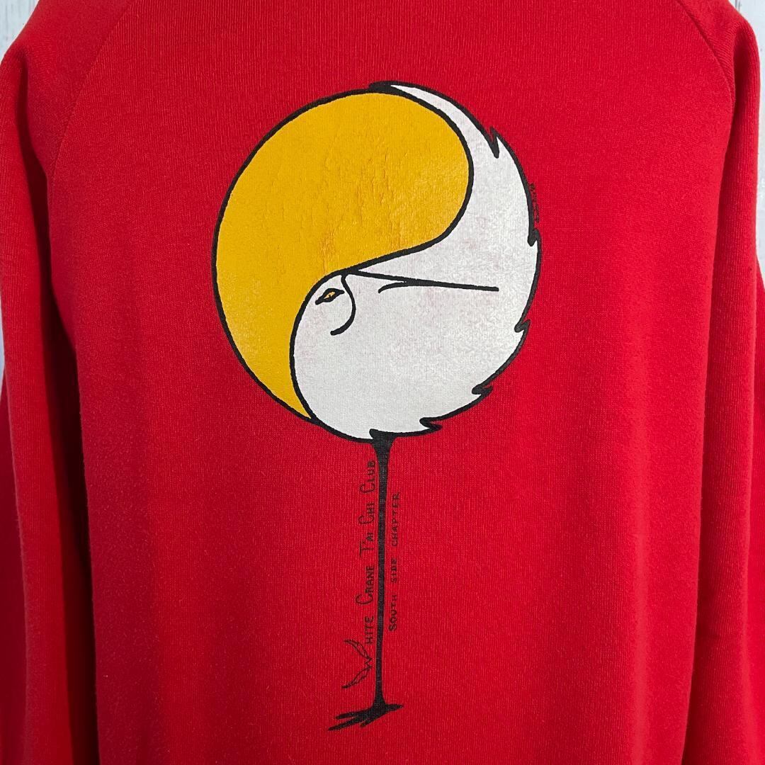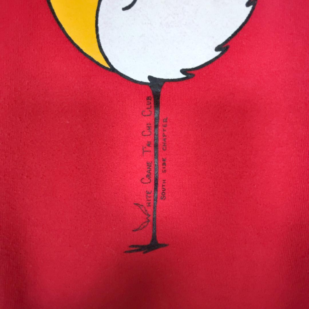 【一点物】80年代 ヴィンテージ アメリカ製 JERZEES ジャージーズ スウェット ラグランスリーブ レッド グラフィックプリント white crane tai chi club Lサイズ[SJ0034]